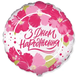 Красива фольга З Днем народження Квіти. Розмір 45см.